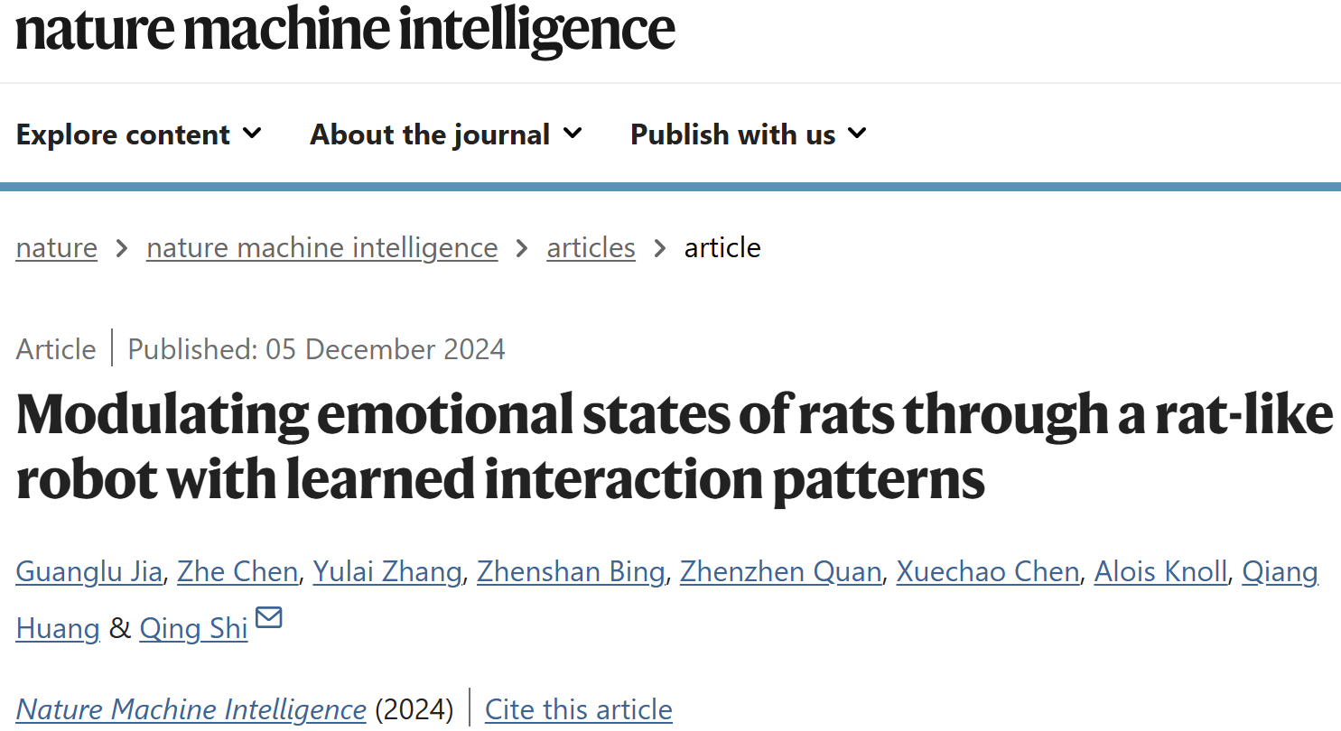 成人av 石青教授团队在机器人-动物交互领域取得重要进展,12月5日,其研究成果“通过类鼠机器人调节大鼠情绪状态(Modulating emotional states of rats through a rat-like robot with learned interaction patterns)”为题,以长文(Article)形式在线发表于自然子刊《自然·机器智能》 (Nature Machine Intelligence)。该成果首创了一种机器人-大鼠社交范式(图1),展示了独特的社交学习技能,实现了机器人与动物长时、重复和可控的开放式互动,克服了生物系统内自然社会交互的局限性,为理解人类与人工智能之间的“社会”互动提供新思路。