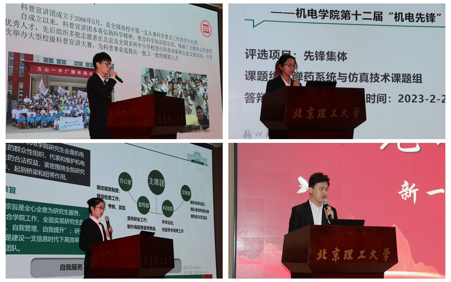 先锋集体们各展所长,从社团、党支部、课题组到宿舍,他们全方位展示了机电学子热爱集体、团结奋斗的精神面貌。